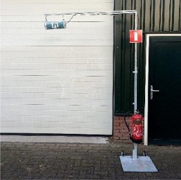 stand alone met noodverlichting en brandblusser